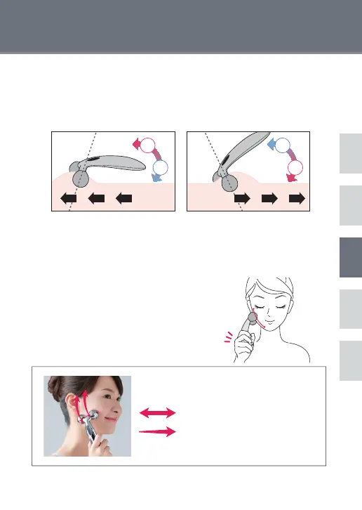 轻轻握住手柄,使滚轮接触面部