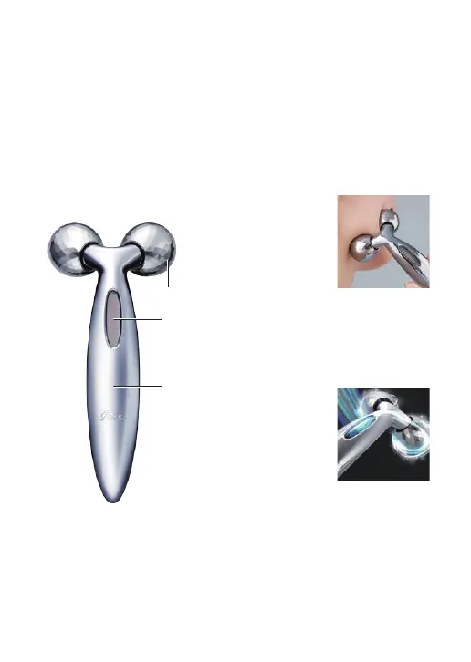 ①輕輕握住手柄,將滾輪貼在臉上。