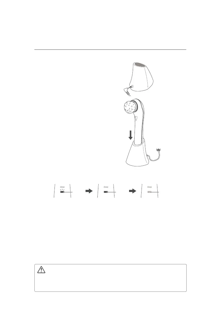 ⑤ 充電完了後、充電台用アダプターをコンセントから抜き、充電台から取り