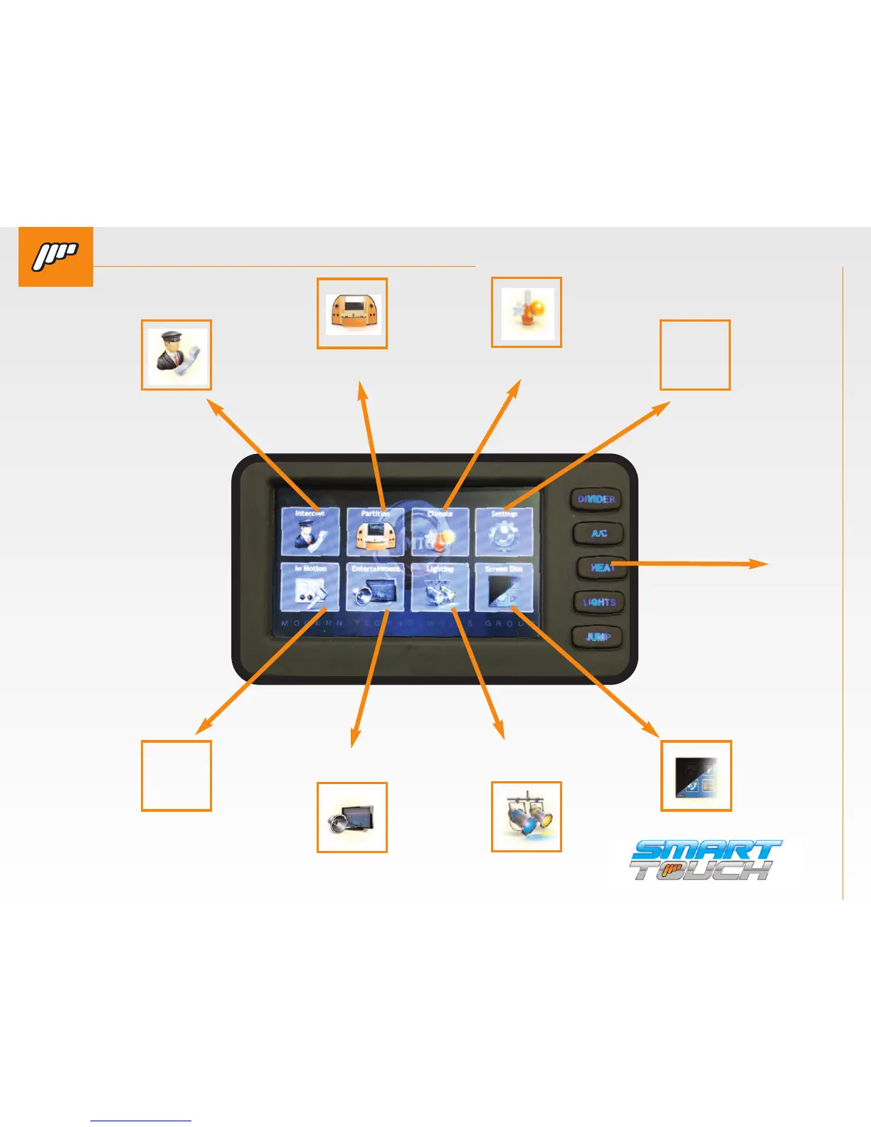 MTG Smart Touch System - Drivers Side Diagram and Controls; Intercom; Partition; Climate