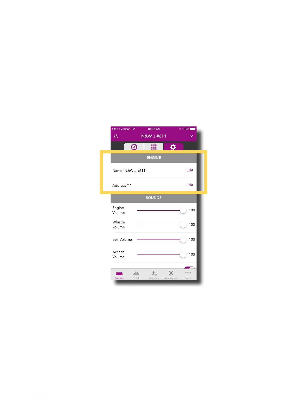 You can edit the engine name or address by simply tapping EDIT shown to the right of both.