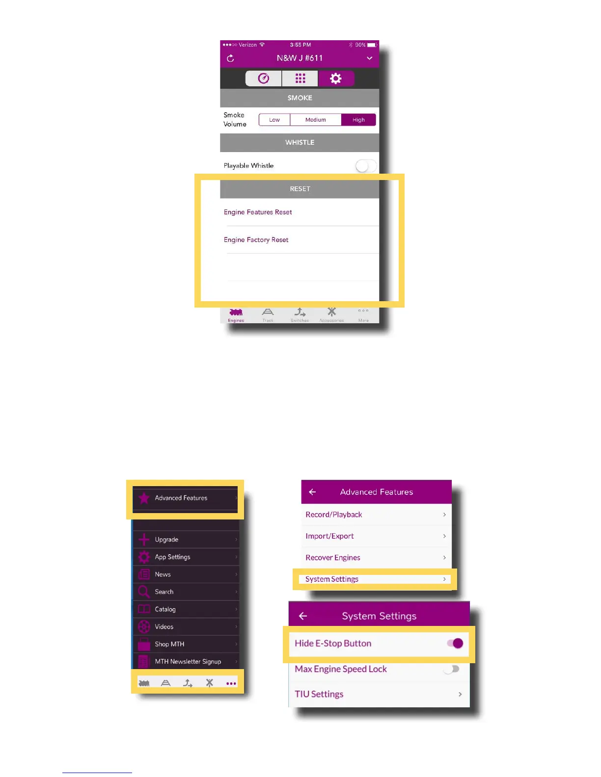 To Unhide or Hide the E-Stop Feature: