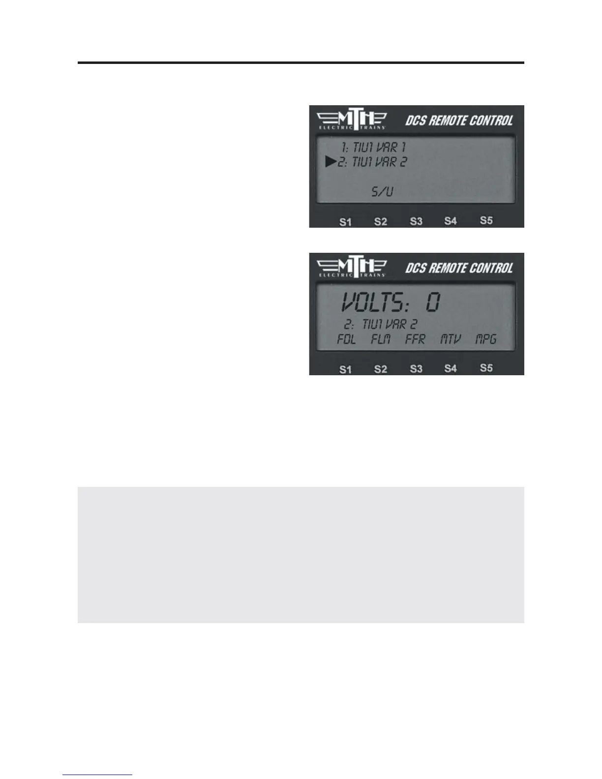 DCS Tip: To program Proto-Sound 1 engines, select the MPG softkey (S5). Scroll