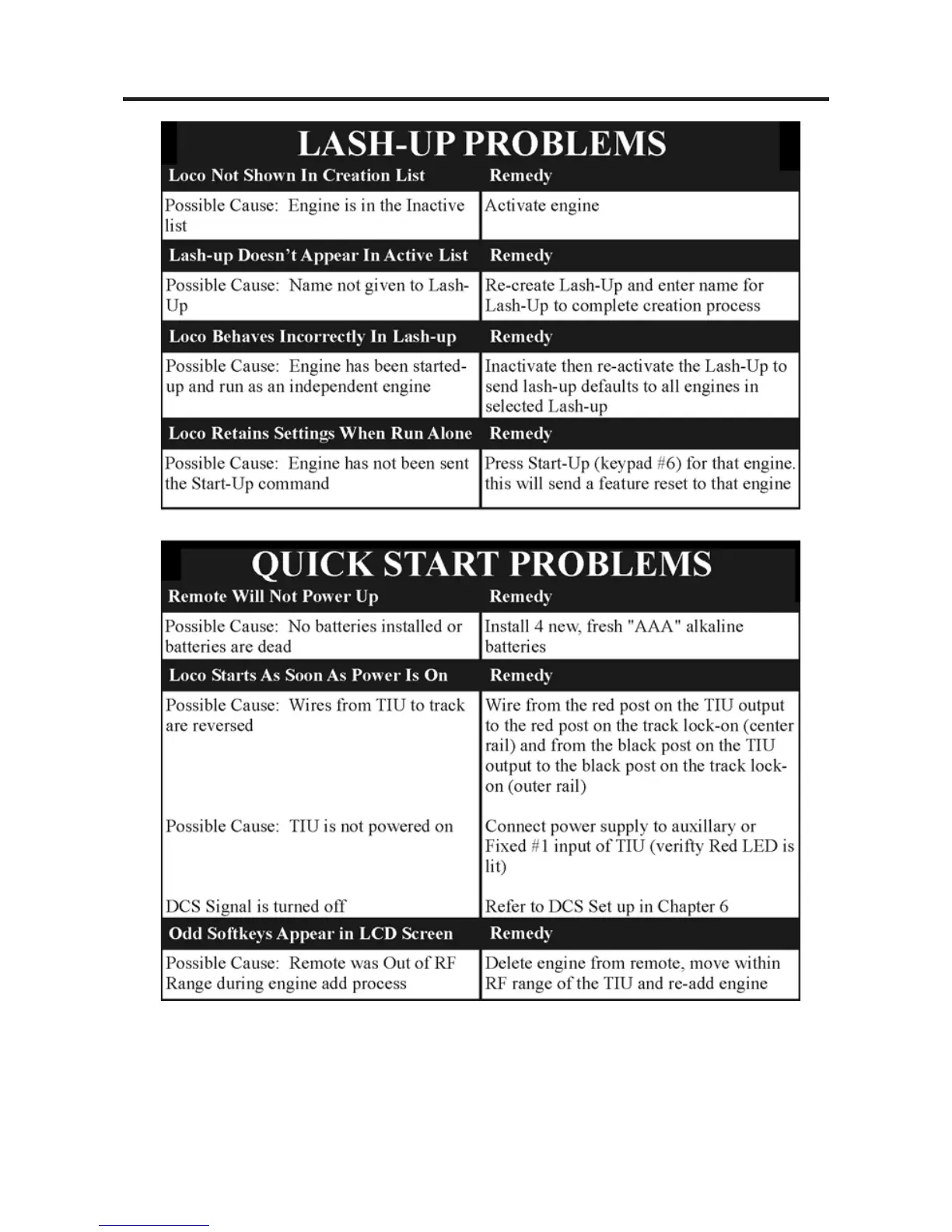 MTHTrains DCS - Lash-up Problems; Quick Start Problems; Softkey Appearance Issues
