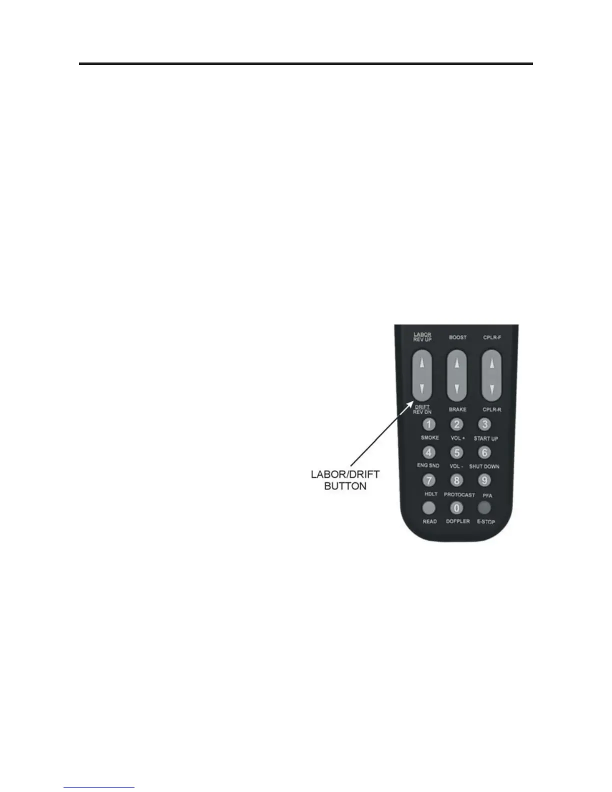 Press the top end of the rocker switch to change engine sounds to labored chuff or high-
