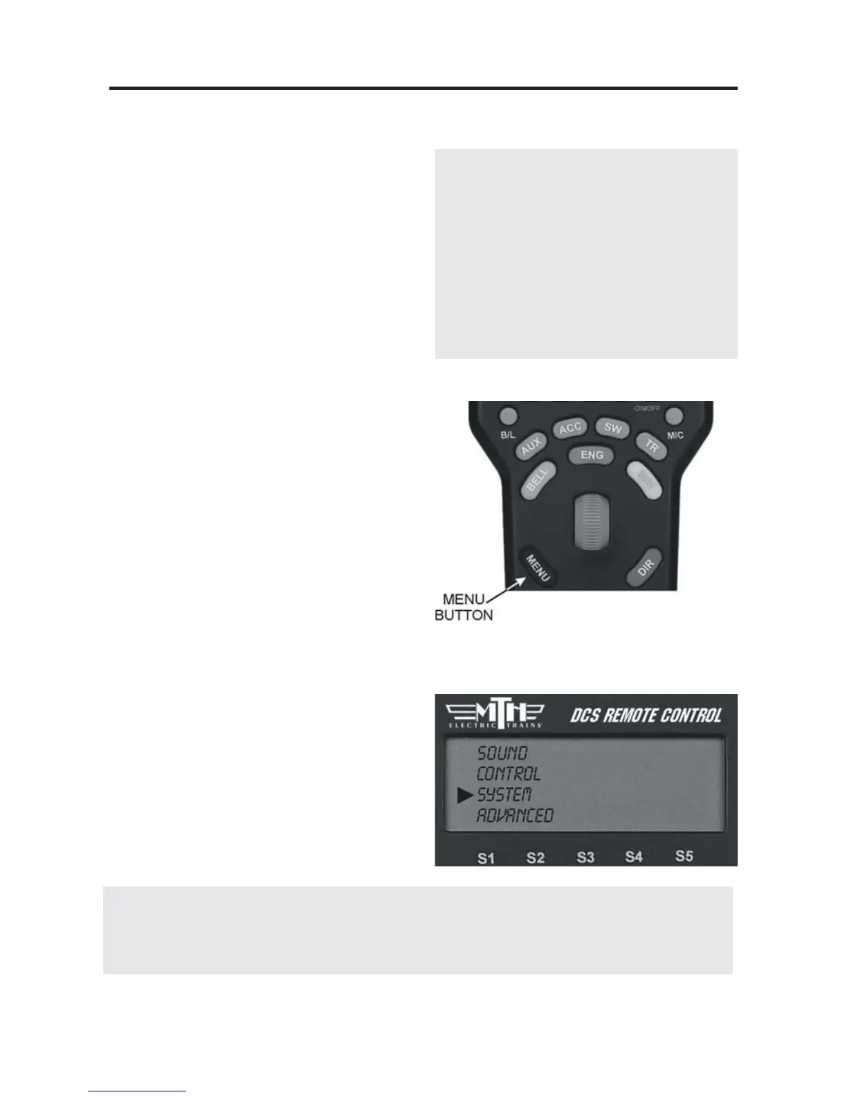 DCS Tip: You can back out of a menu level at any time by pressing Menu to move