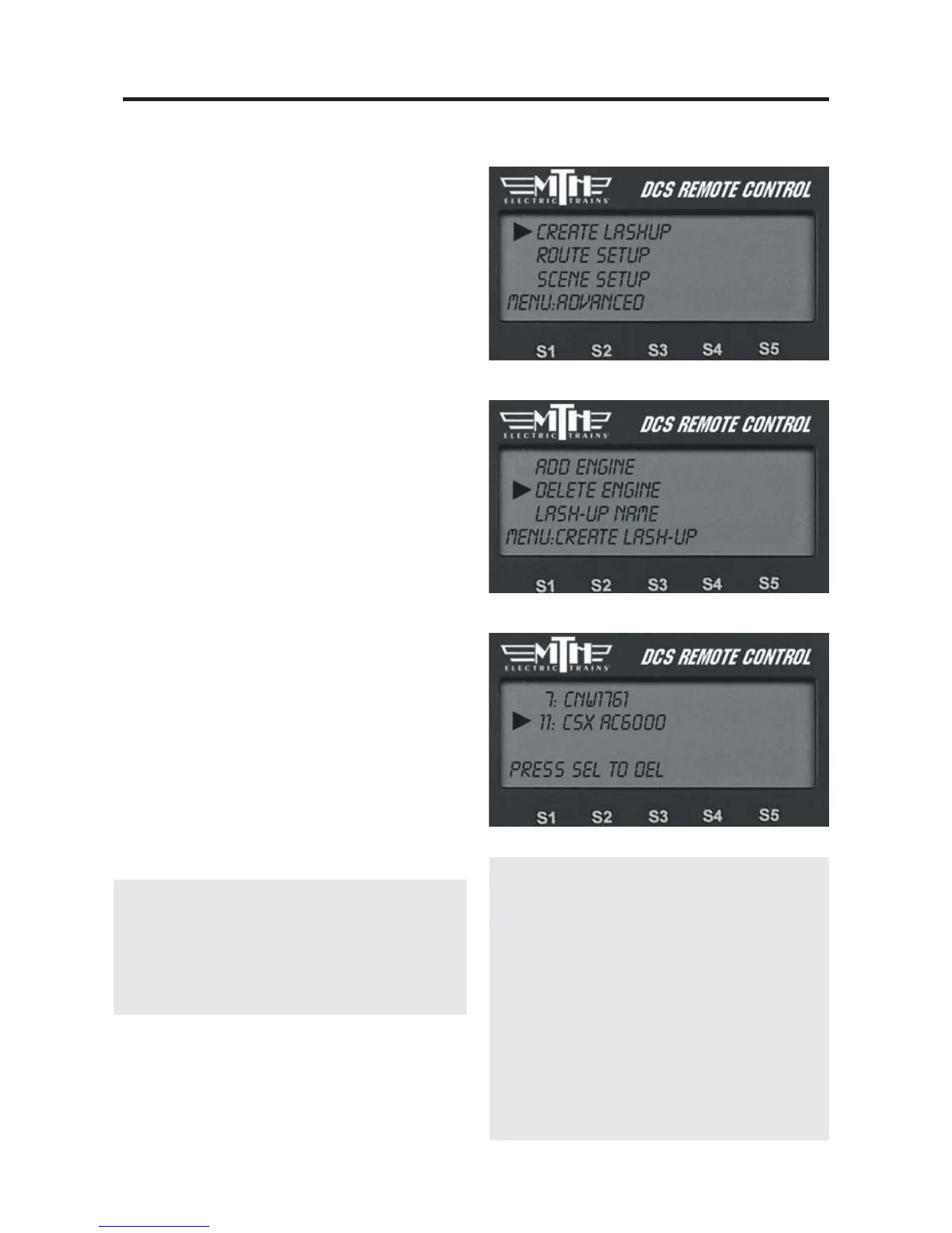 lash-up from the engine list. Note that