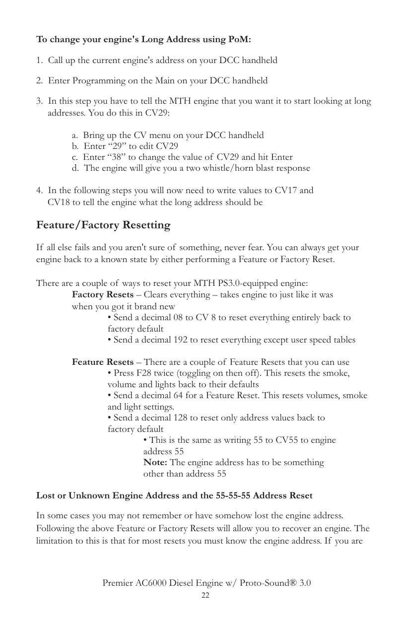 CV18 to tell the engine what the long address should be