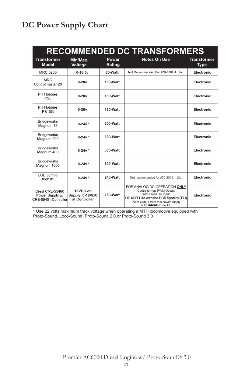 * Use 22 volts maximum track voltage when operating a MTH locomotive equipped with