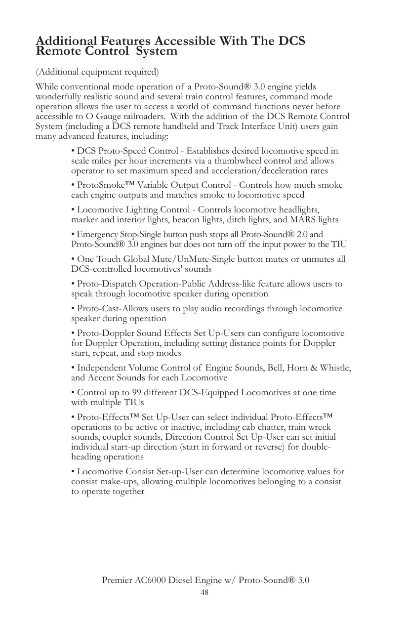 • Control up to 99 different DCS-Equipped Locomotives at one time