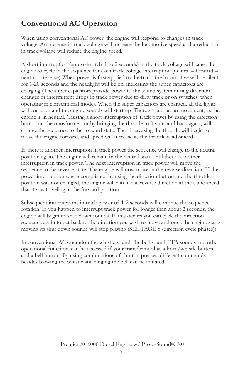 neutral – reverse) When power is first applied to the track, the locomotive will be silent