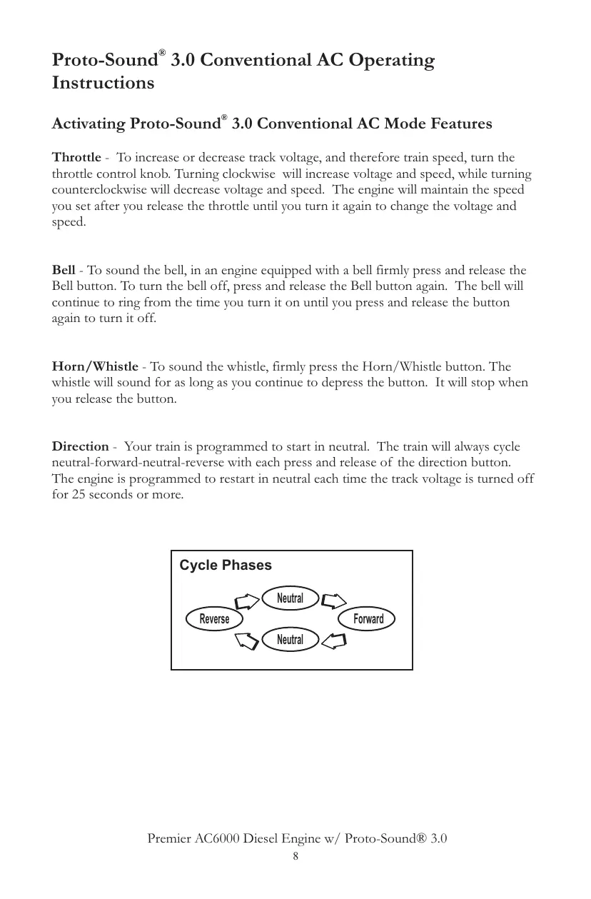 Direction - Your train is programmed to start in neutral. The train will always cycle