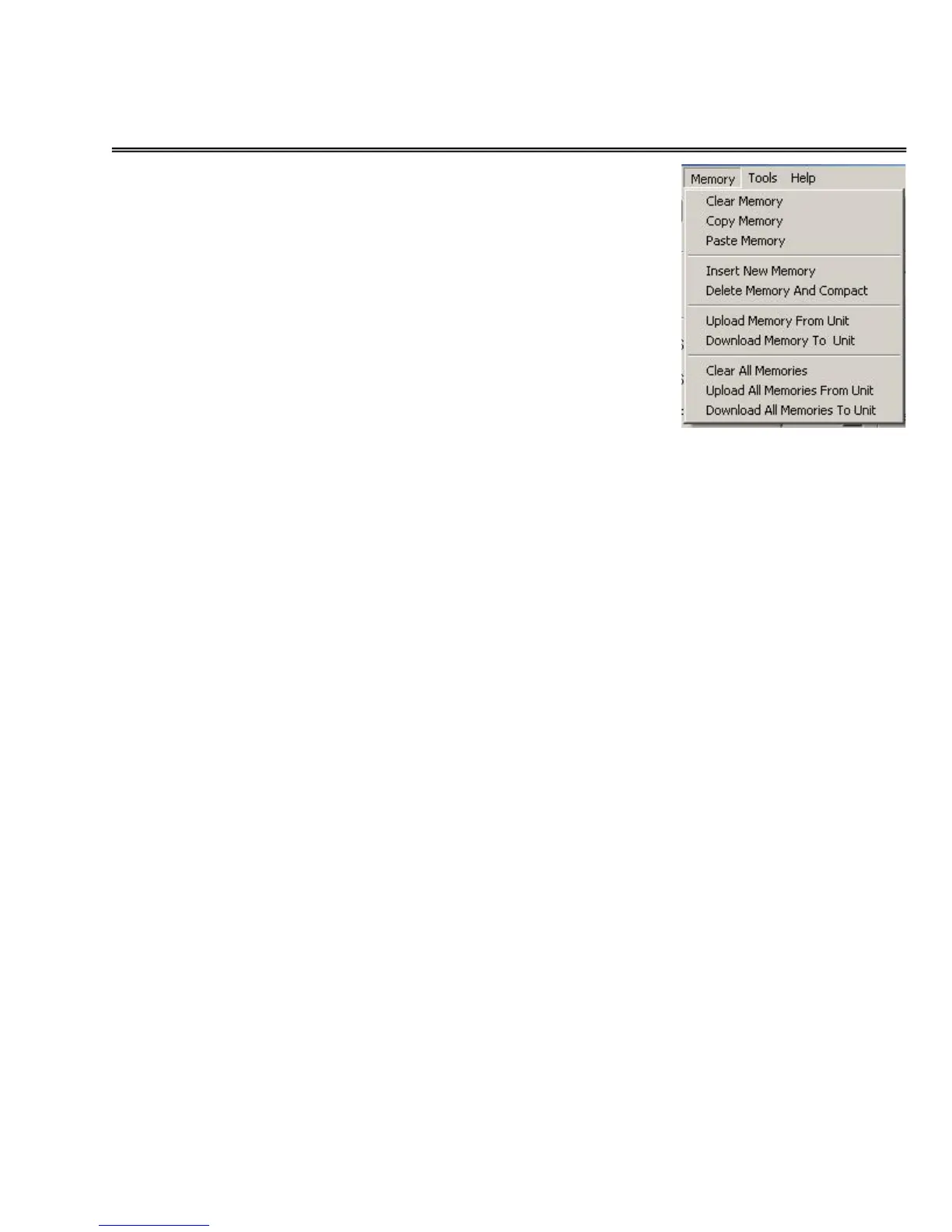 DOWNLOAD MEMORY TO UNIT – Selecting this option establishes