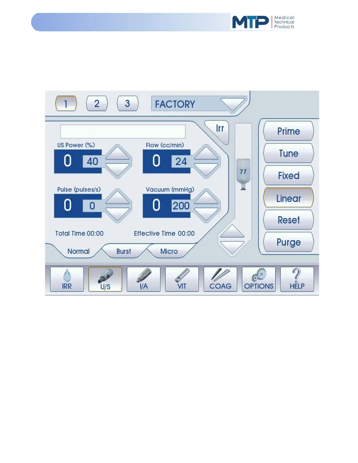 Linear: Phaco energy is controlled in a “LINEAR” fashion by the foot pedal from zero to the