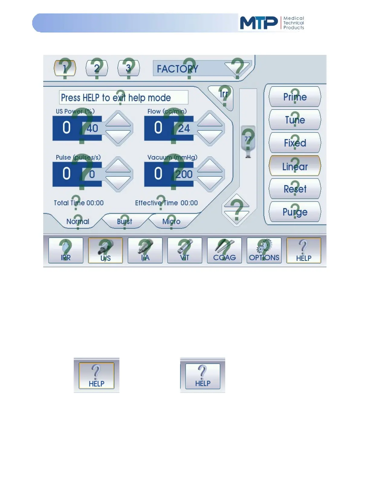 The HELP Mode allows the user to view the available help for all screens of operation. When in