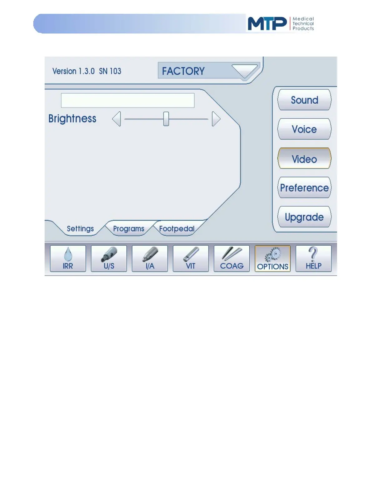 The Video mode allows the user to set their preferences for the LCD display brightness.
