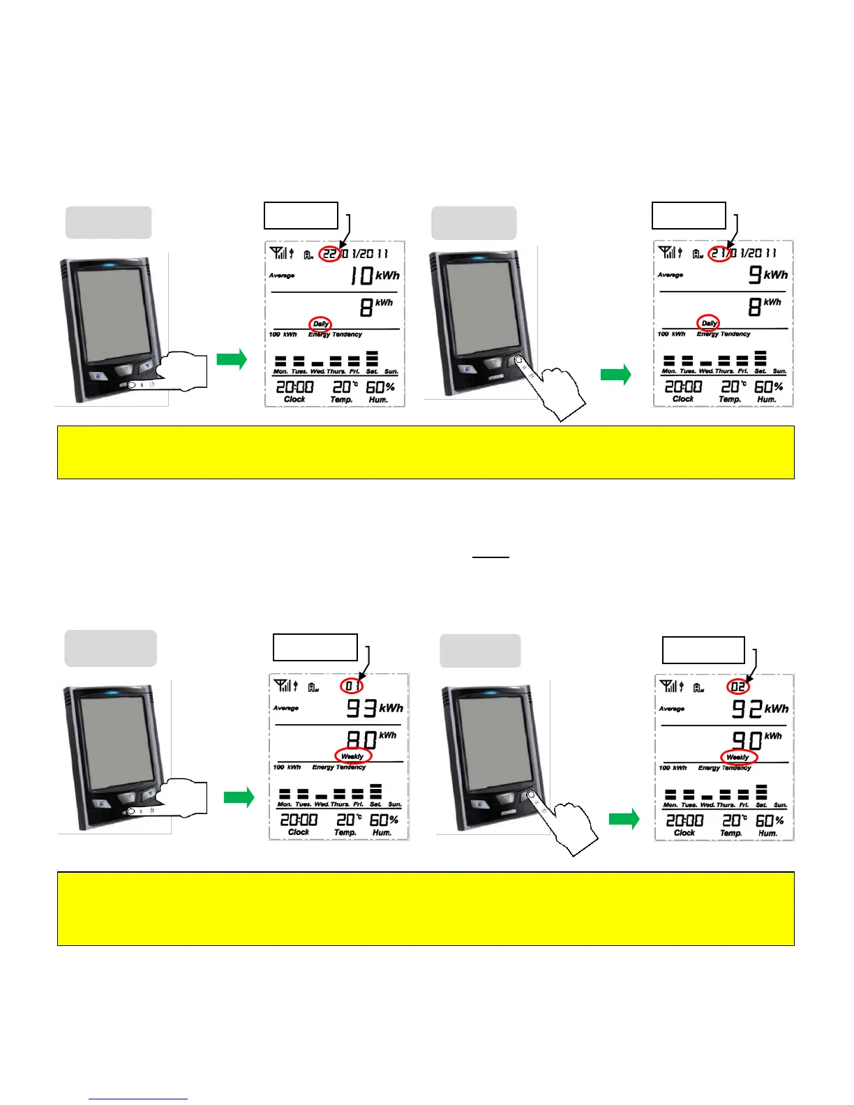 on the screen (See picture below). The ʺWeeklyʺ function stores the past 52 weeks of data, as well as the