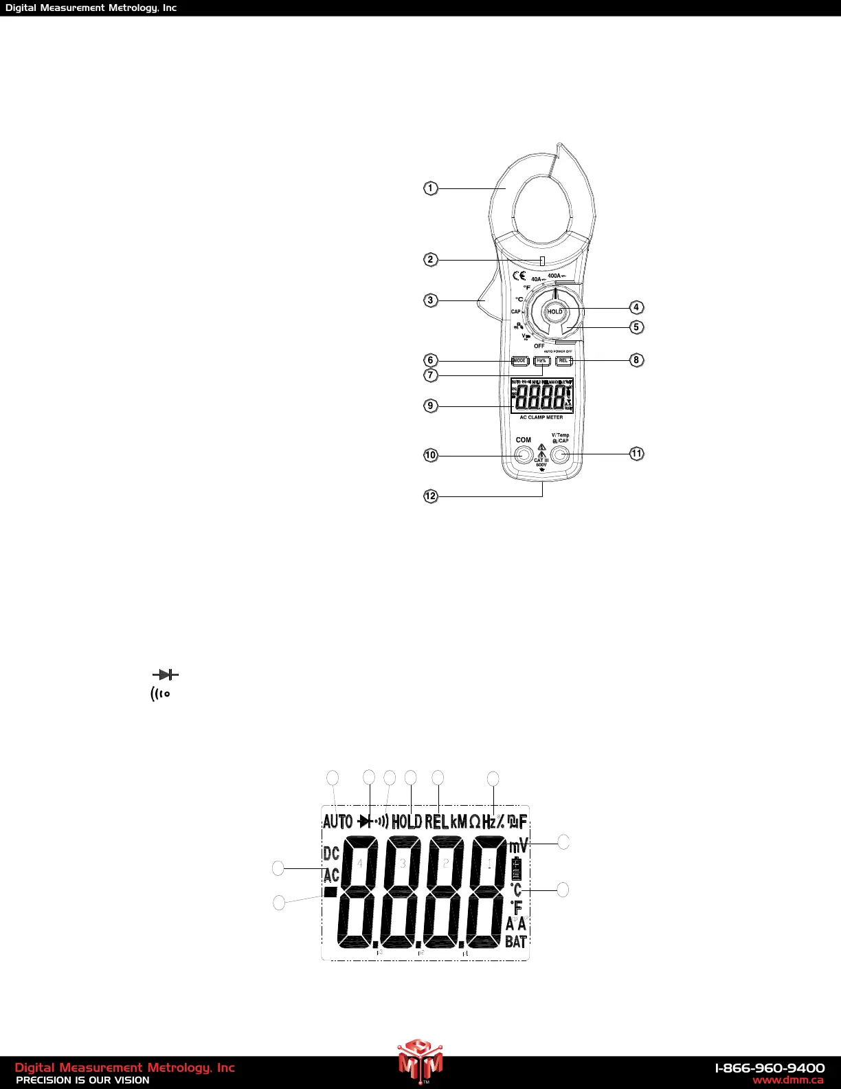 9. ºC, ºF, , m,V,A,K,M,Ω Units of measurement
