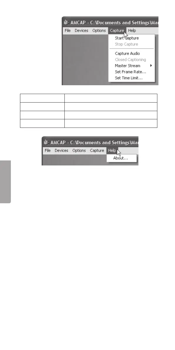Start Capture Käynnistä liikkuvan kuvan nauhoitus.