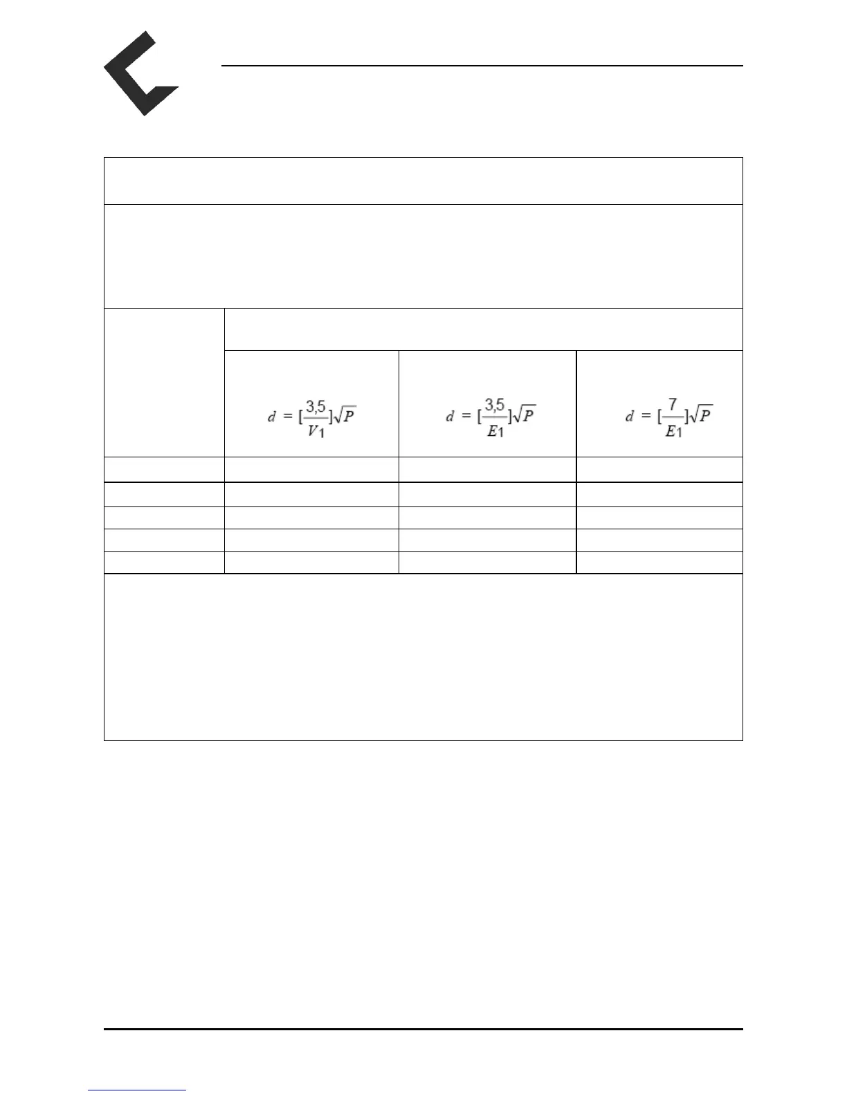 separation distance d in meters (m) can be estimated using the equation applicable to the