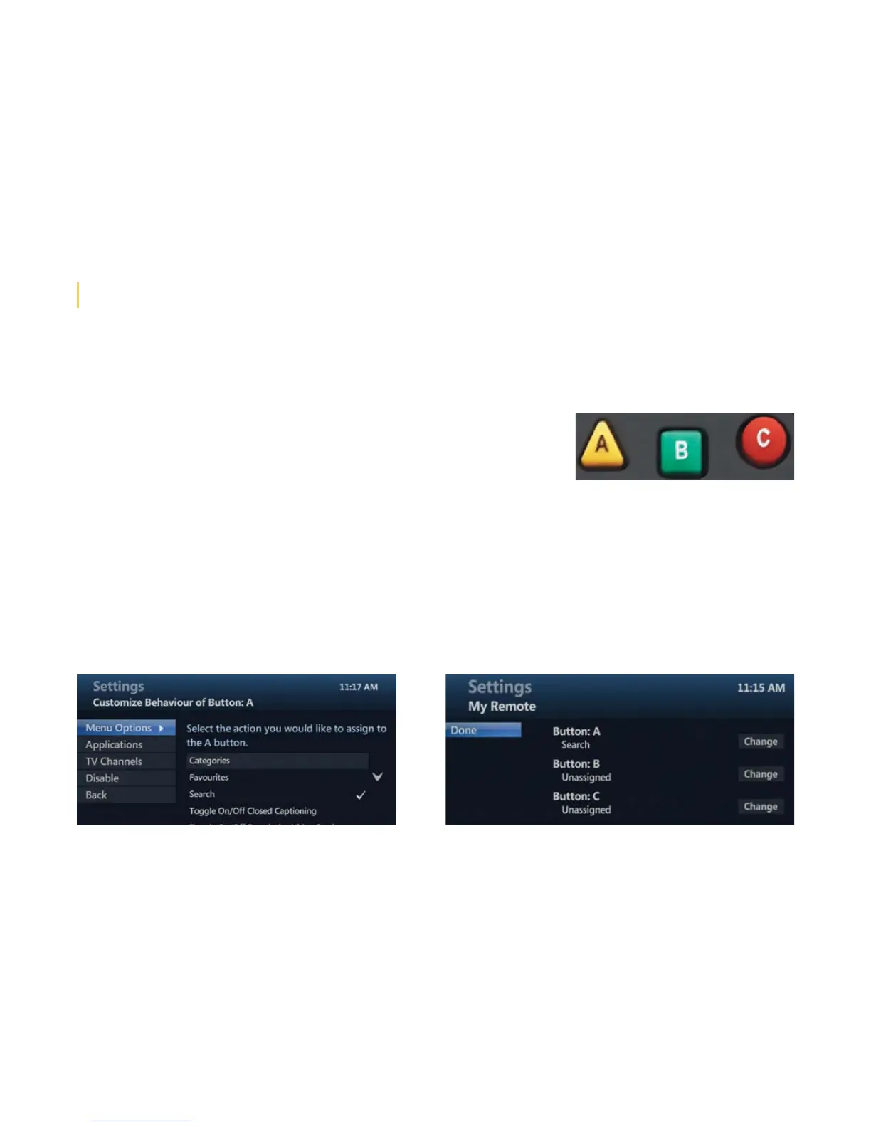 MyRemote lets you customize the A, B, and C buttons on your remote for one-touch access to your favourite MTS