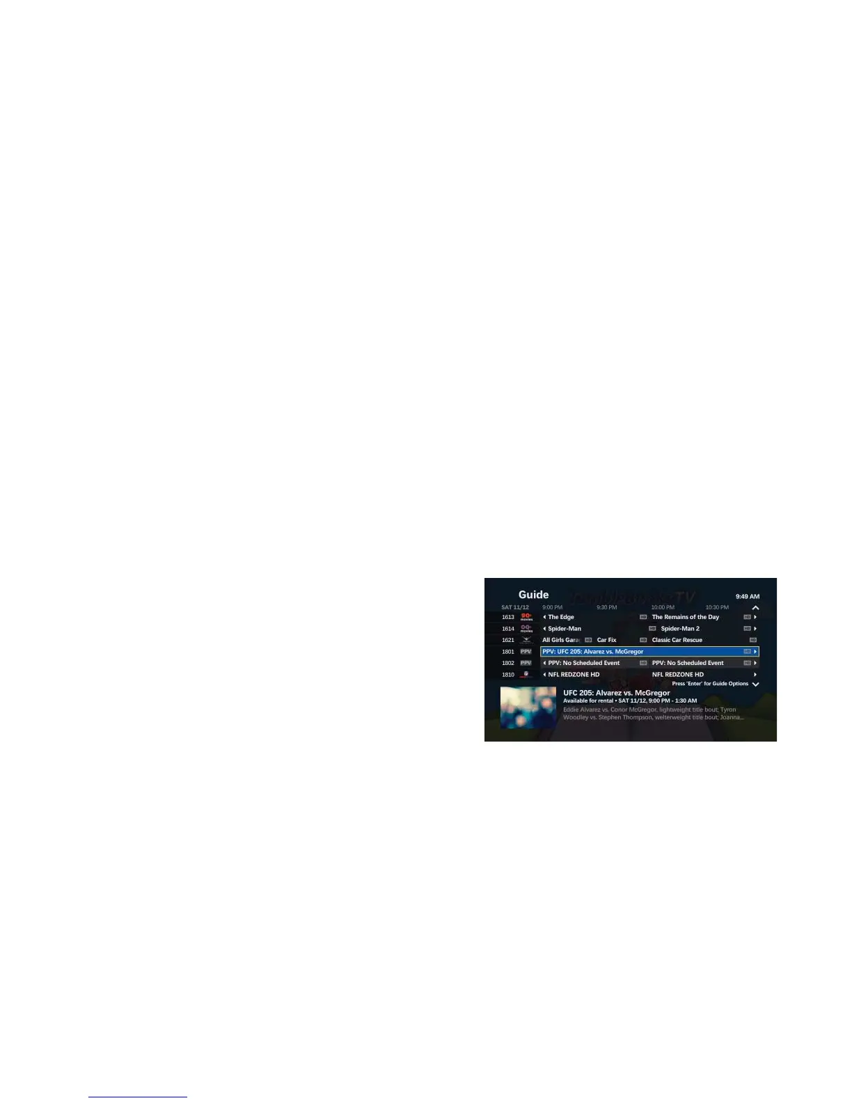 • Press GUIDE to see Pay-Per-View listings on channels 801 and