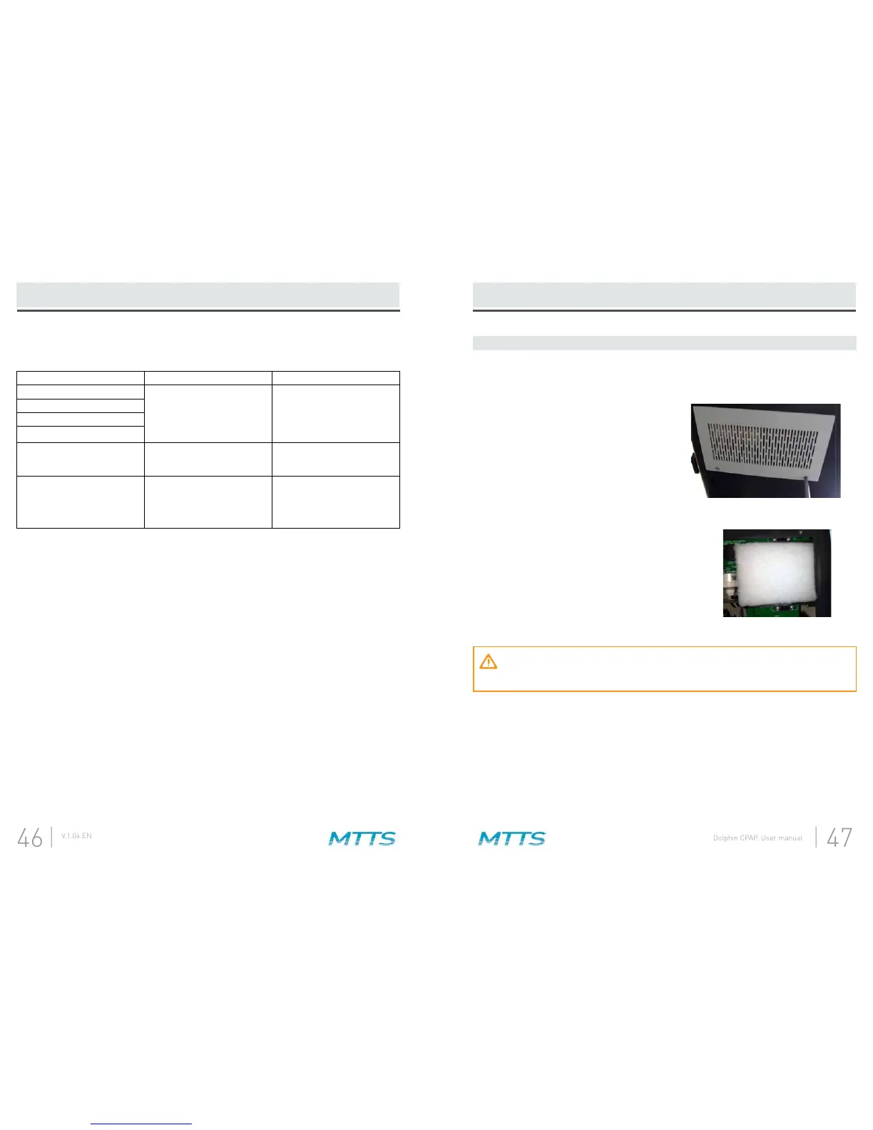 The Dolphin CPAP includes a number of parts that must be replaced or serviced