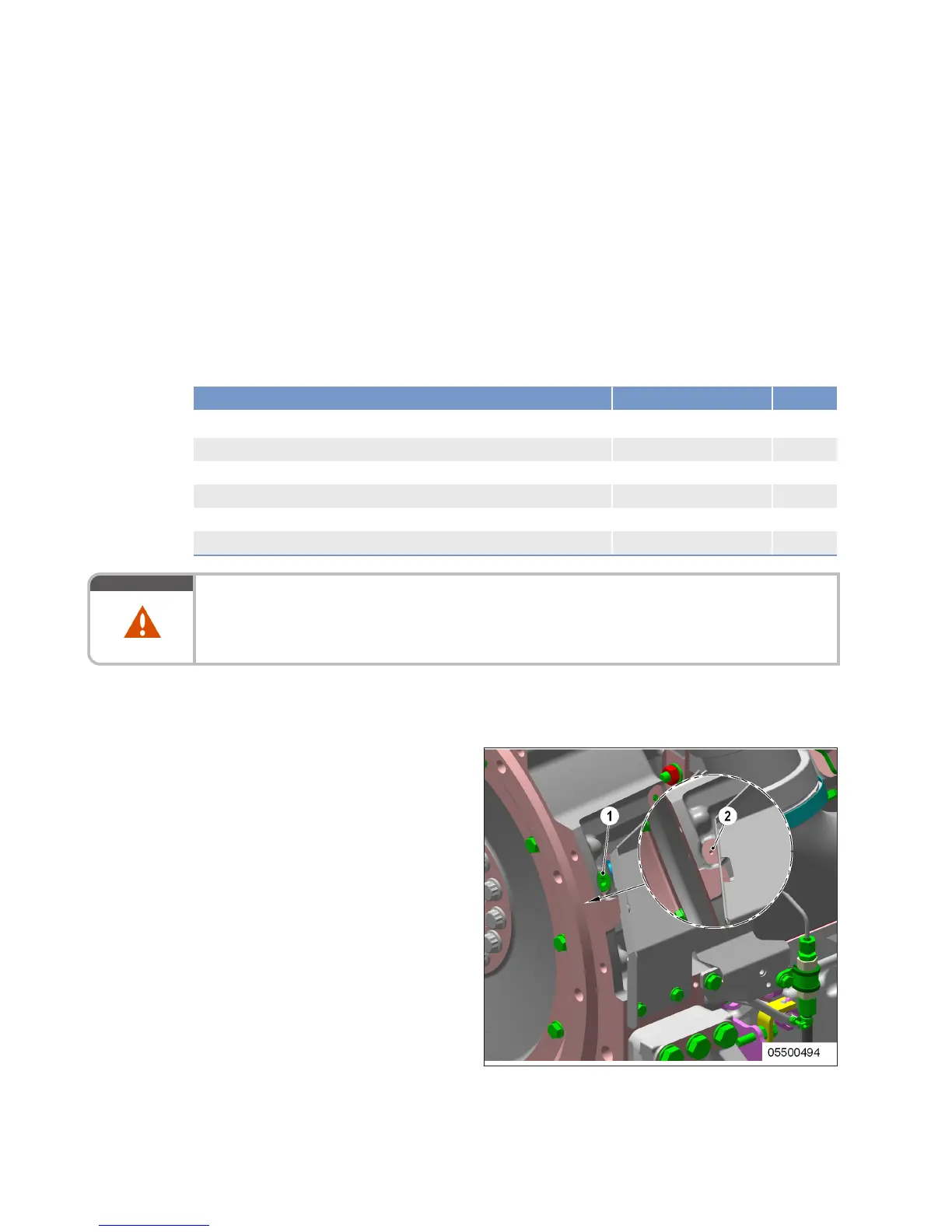 til the bore (2) on the flywheel is visible in