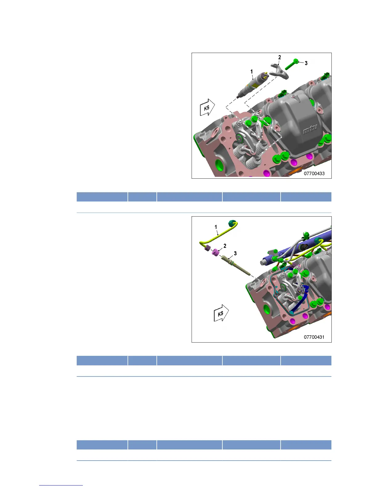 9. Tighten union nut (2) on pressure pipe neck with torque wrench to the specified tightening torque.