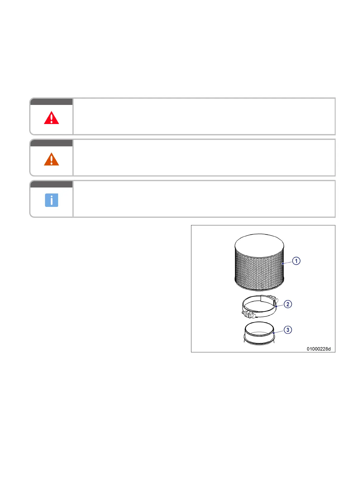 4. Place new air filter (1) with clamp (2) onto in-
