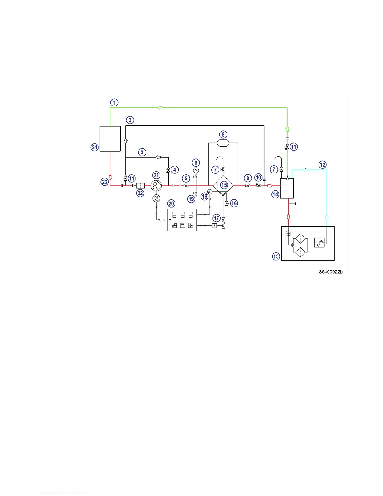 2. Check the differential pressure at differential pressure gauge (8). Differential pressure in a new system: