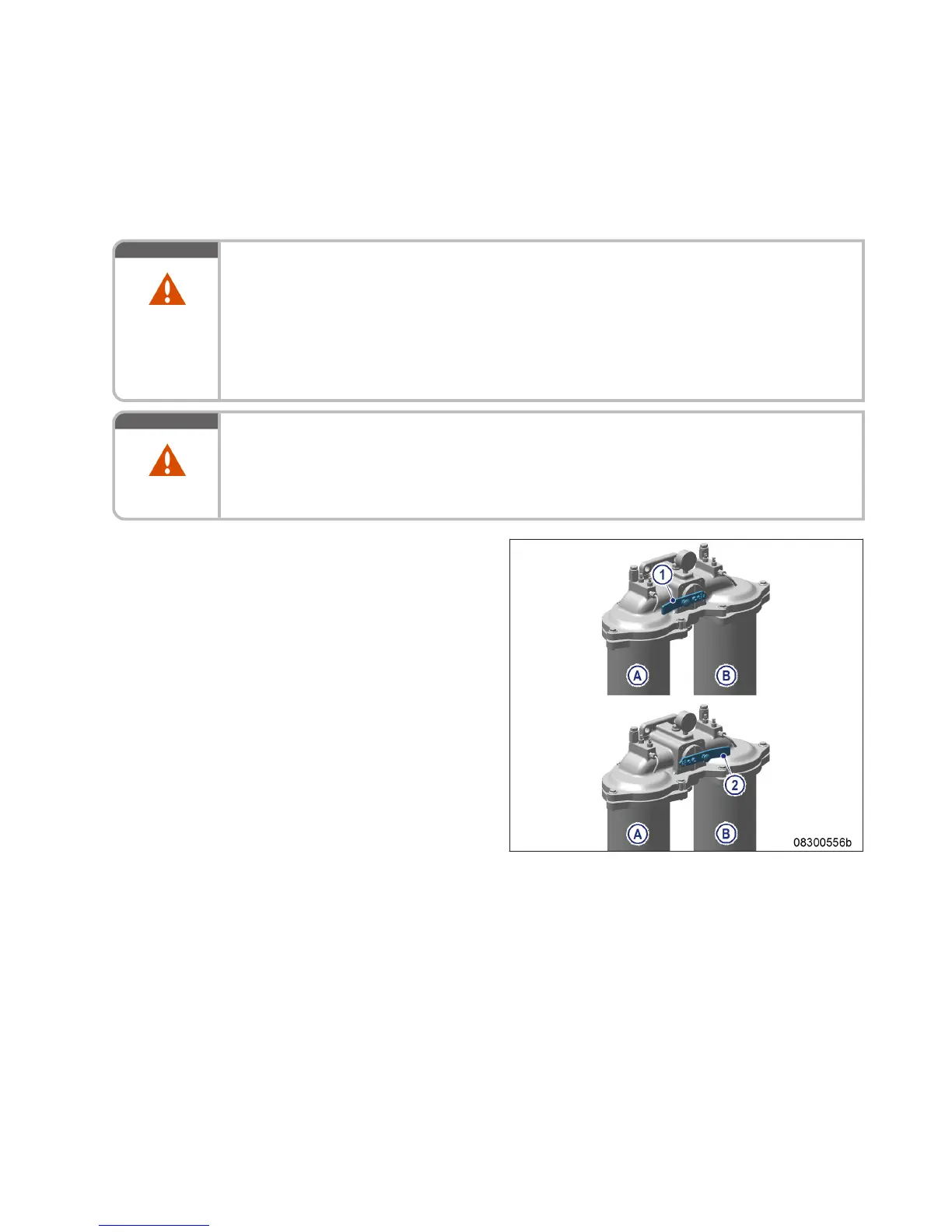 1. Switch off filter which is to be drained (A or