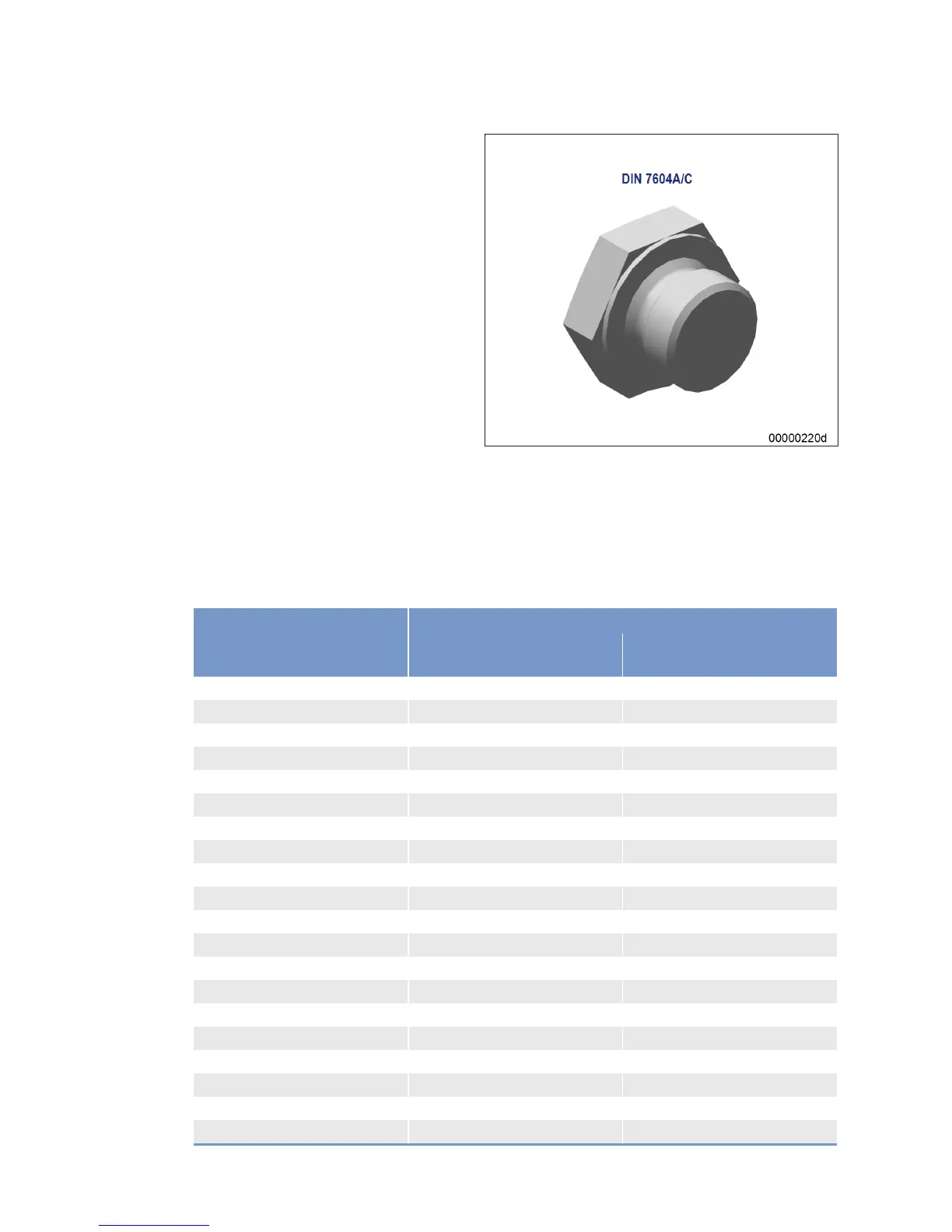 An assembly tolerance of +10% of the figures in the table is permitted due to unavoidable deviations