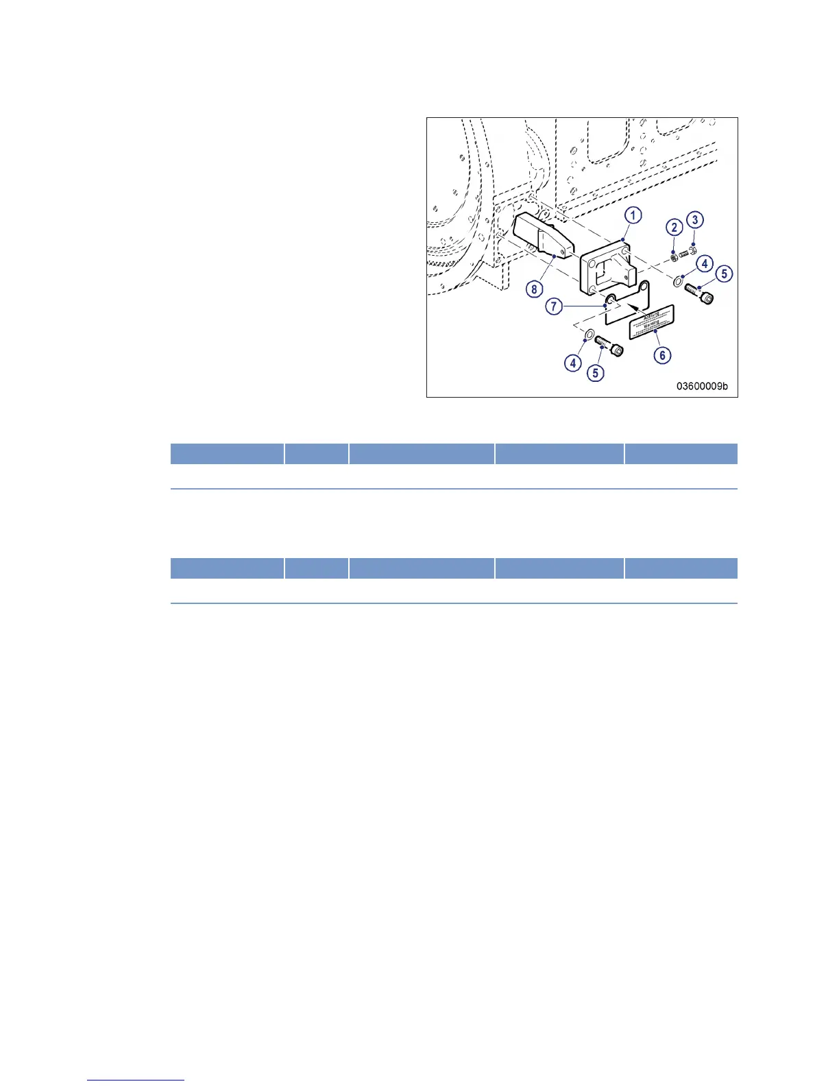 6. Fit sign (6) to mark the engine as "Fitted with transport locking device".