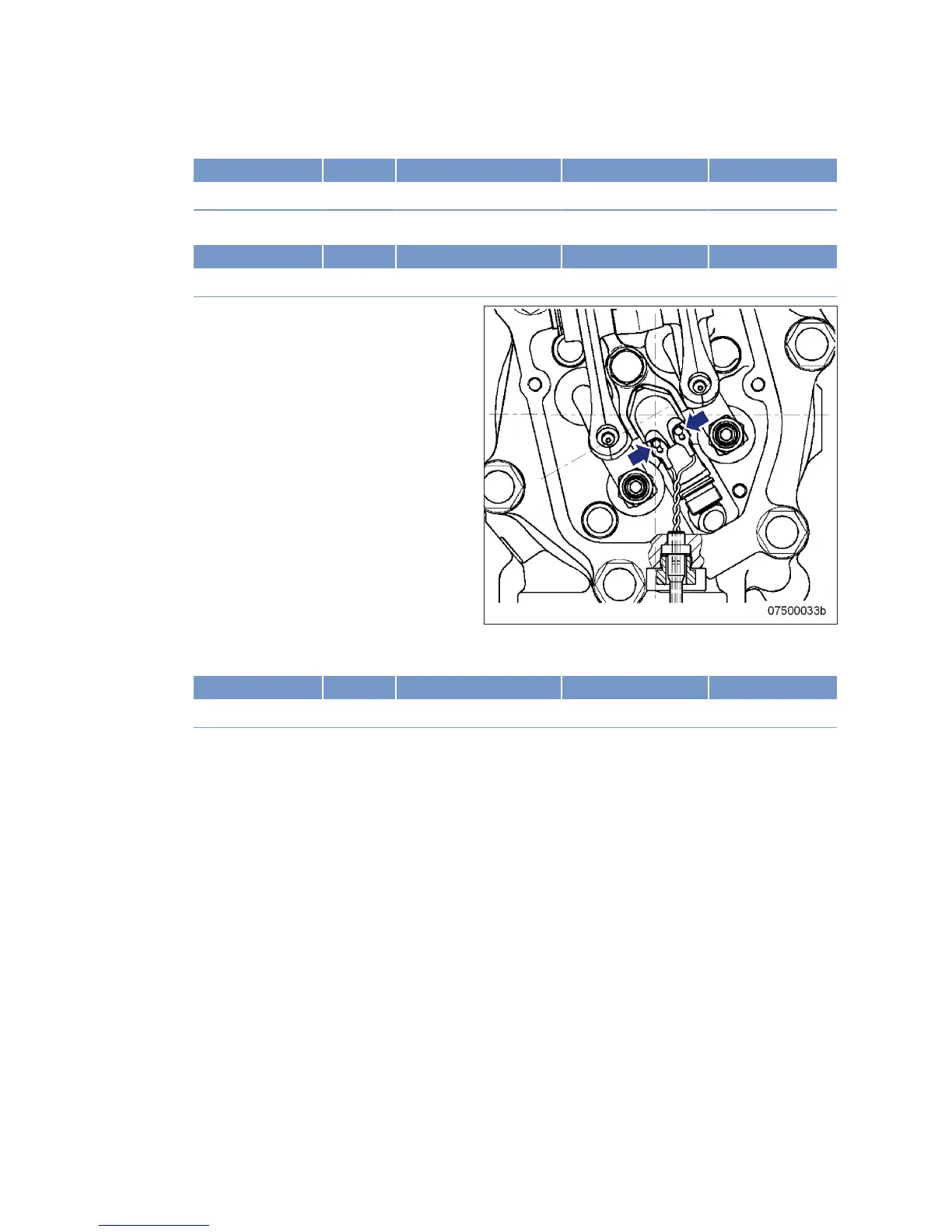 19. Insert cable lugs (arrows) underneath the screws on the injector and tighten screws with torque wrench