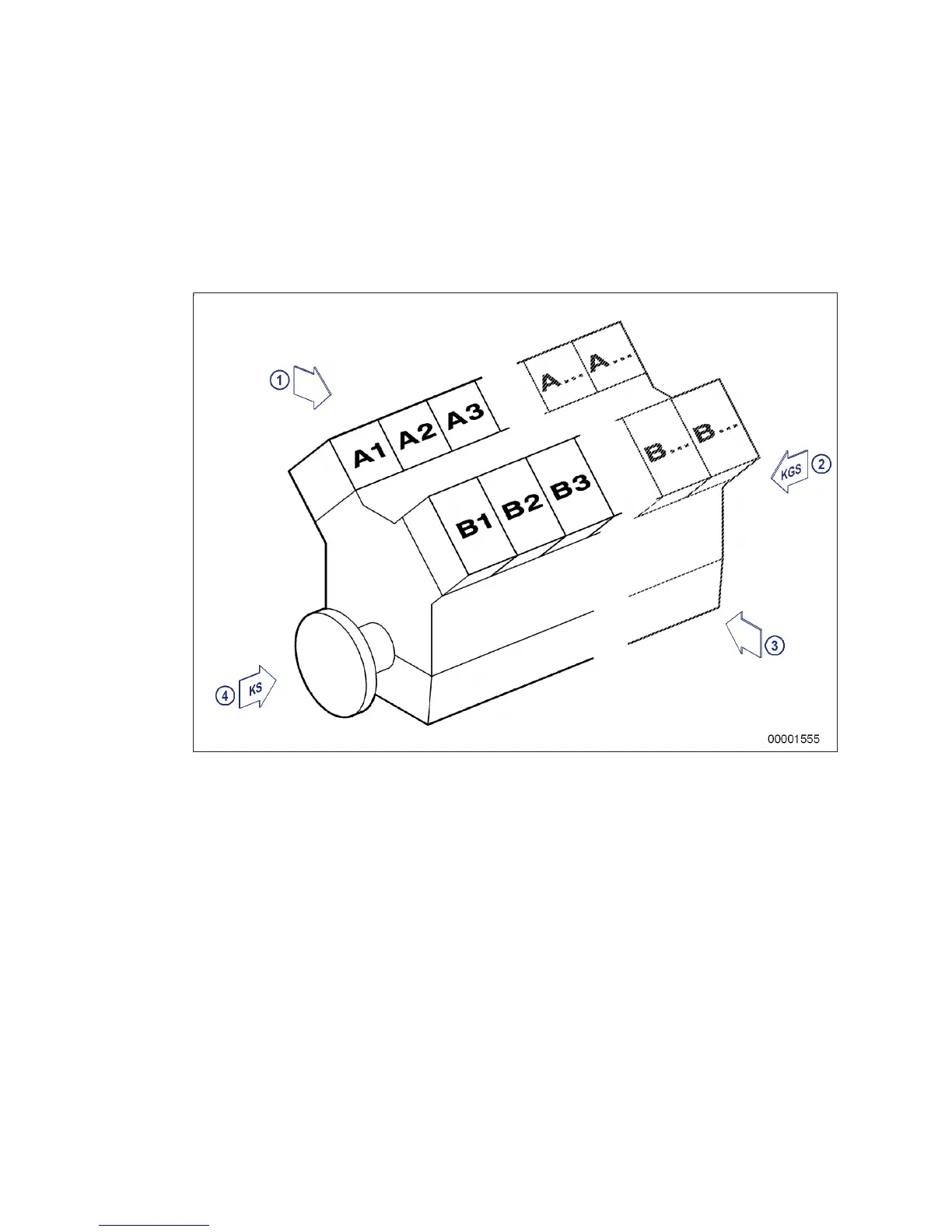 The cylinders of the left engine side are designated "A" and those of the right side "B" (as per DIN ISO