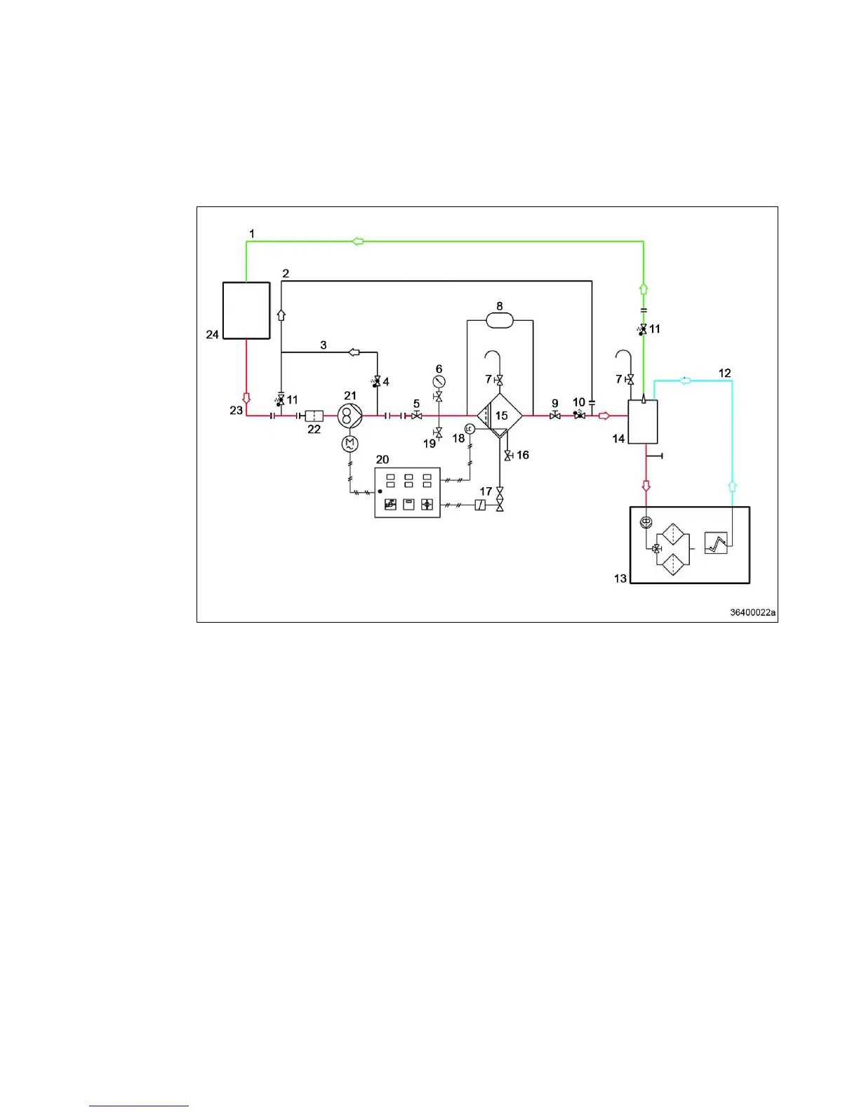 2. Check the differential pressure at differential pressure gauge (8). Differential pressure in a new system: