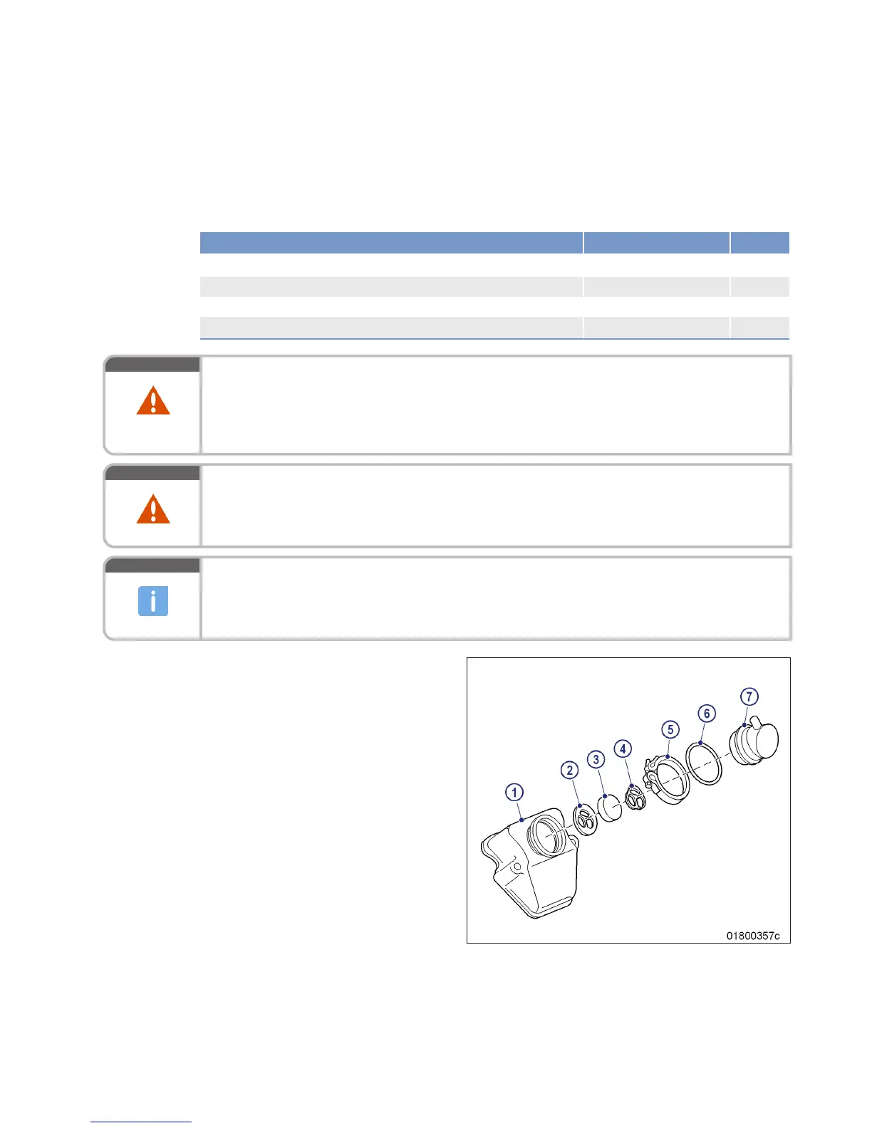 10. Insert both retainers (2, 4) and filter element
