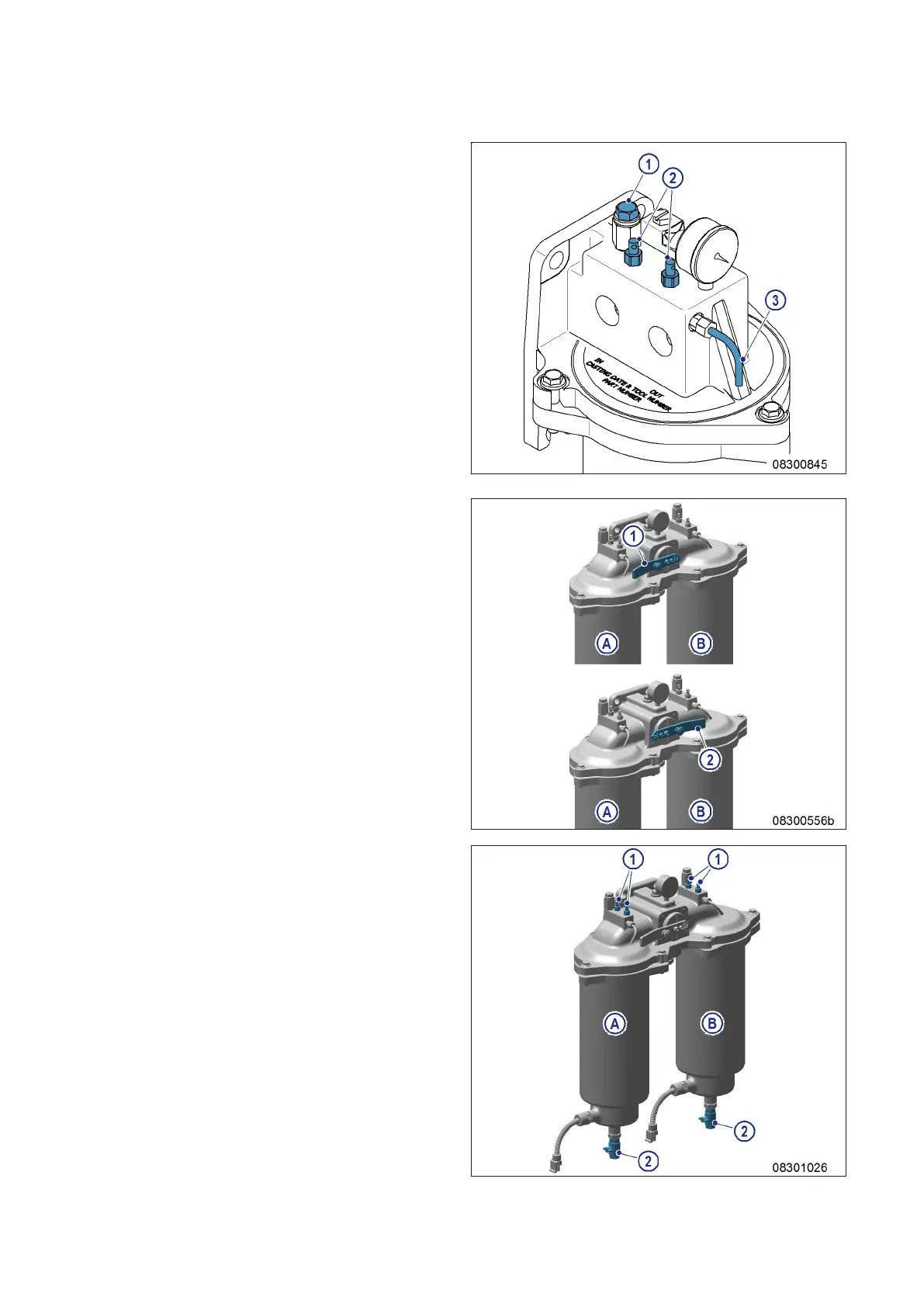 2. Loosen threaded vent plug (1) of filter to be