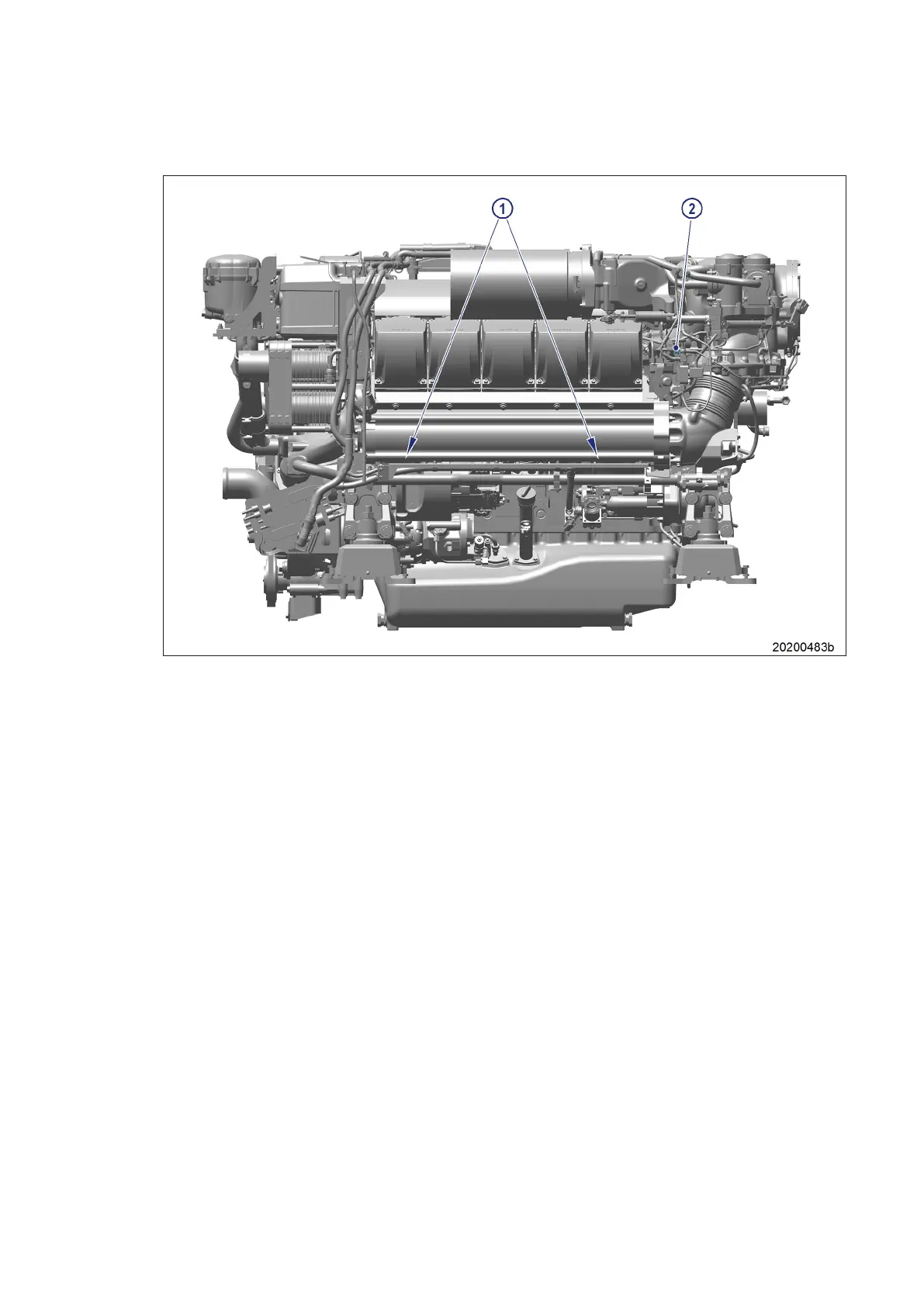 1 Engine coolant drain plug 2 Engine coolant drain plug