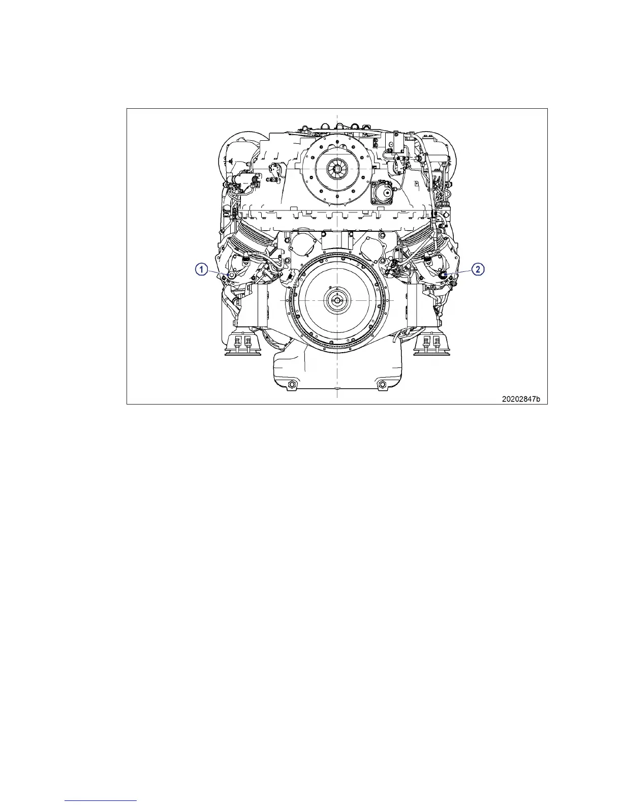1 Engine coolant drain screw 2 Engine coolant drain screw