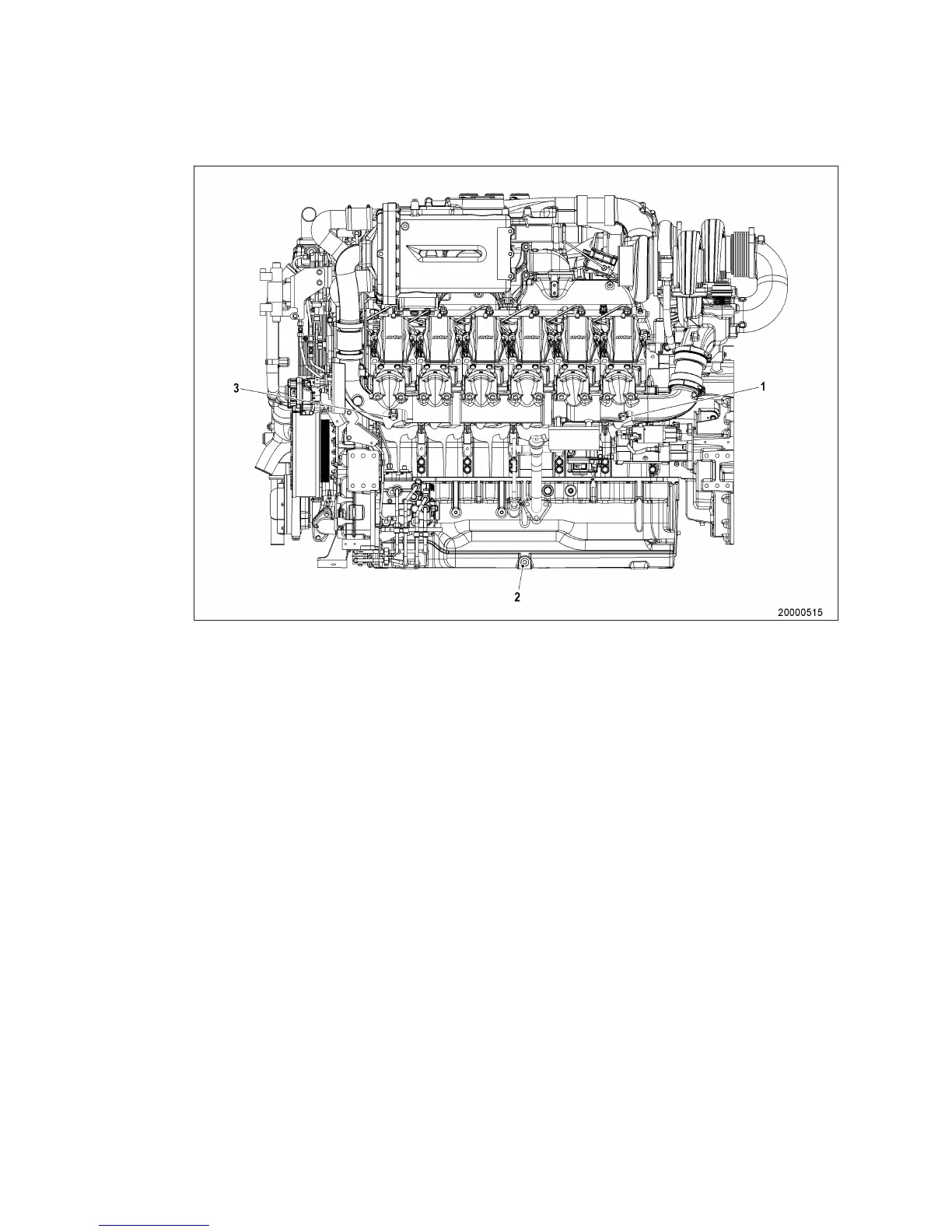 1 Engine coolant drain plug 2 Oil drain plug 3 Engine coolant drain plug