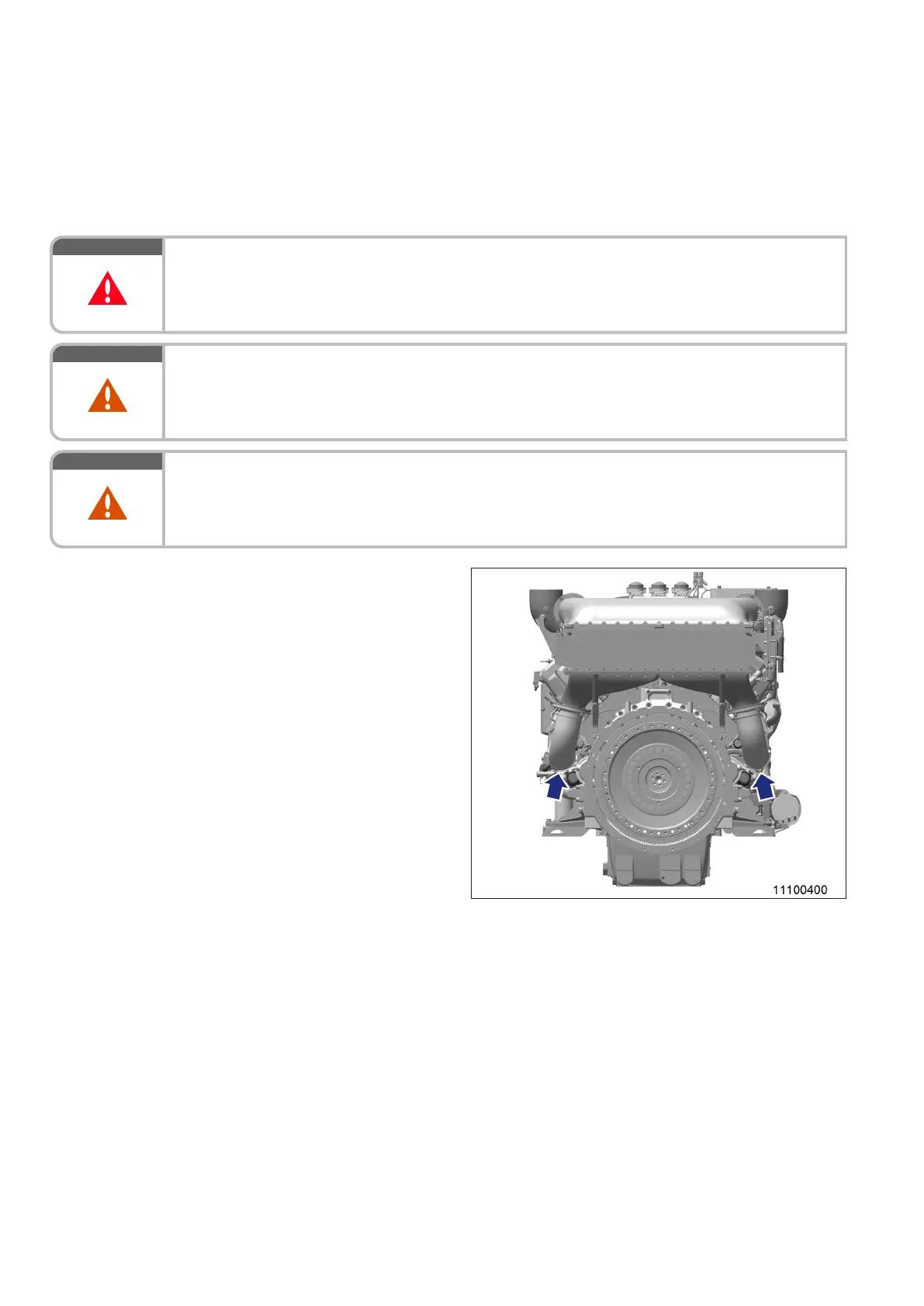 • Operate the engine at low load only. Keep clear of the danger zone of the engine.