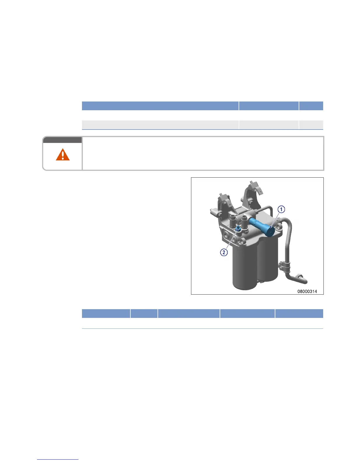 1. Open threaded vent plug (2) on filter head