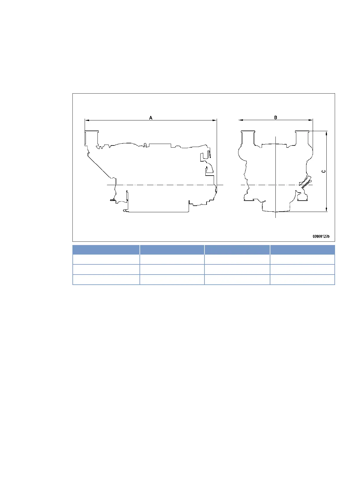 Engine model Length (A) Width (B) Height (C)