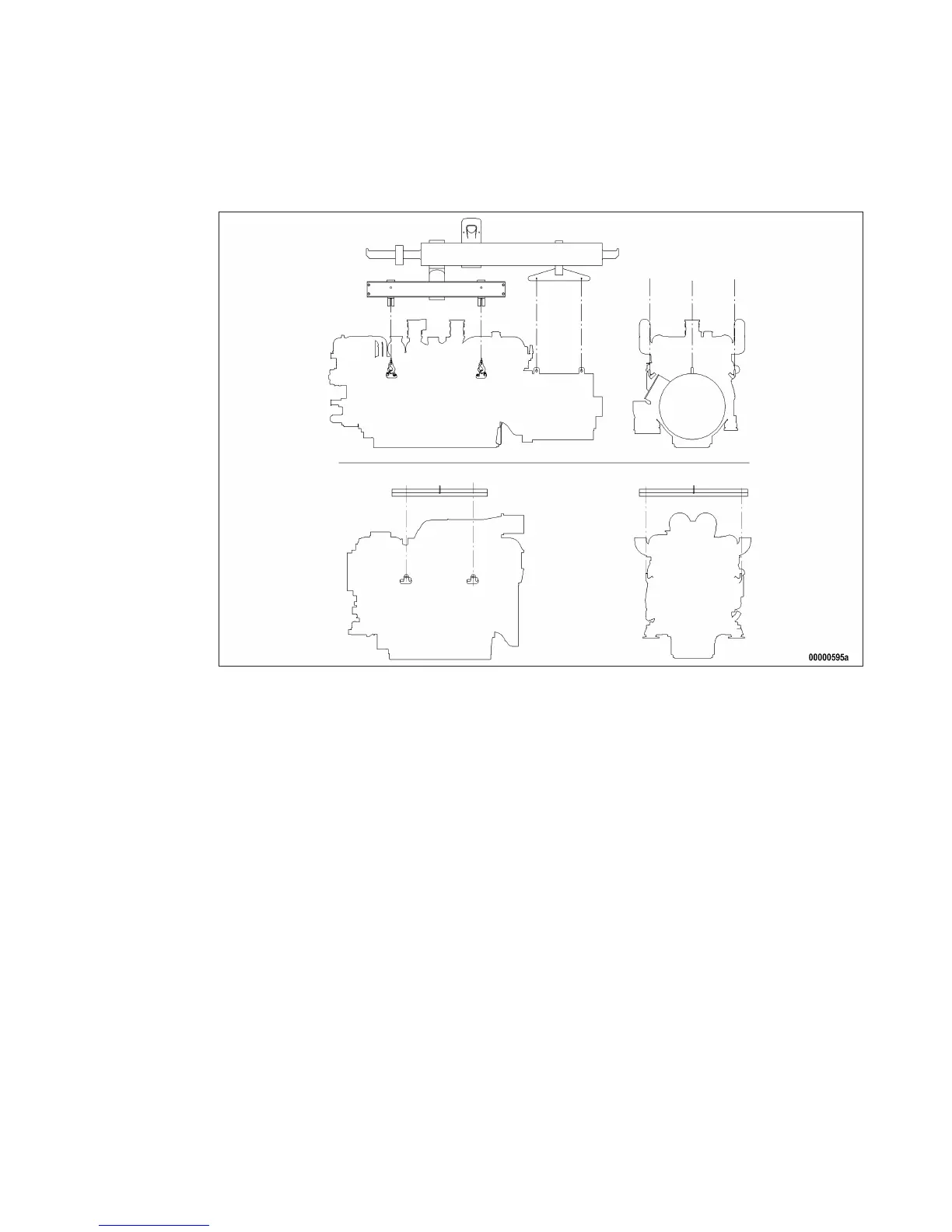 Raise the engine/genset slowly. The lifting ropes or chains must not make contact with the engine or
