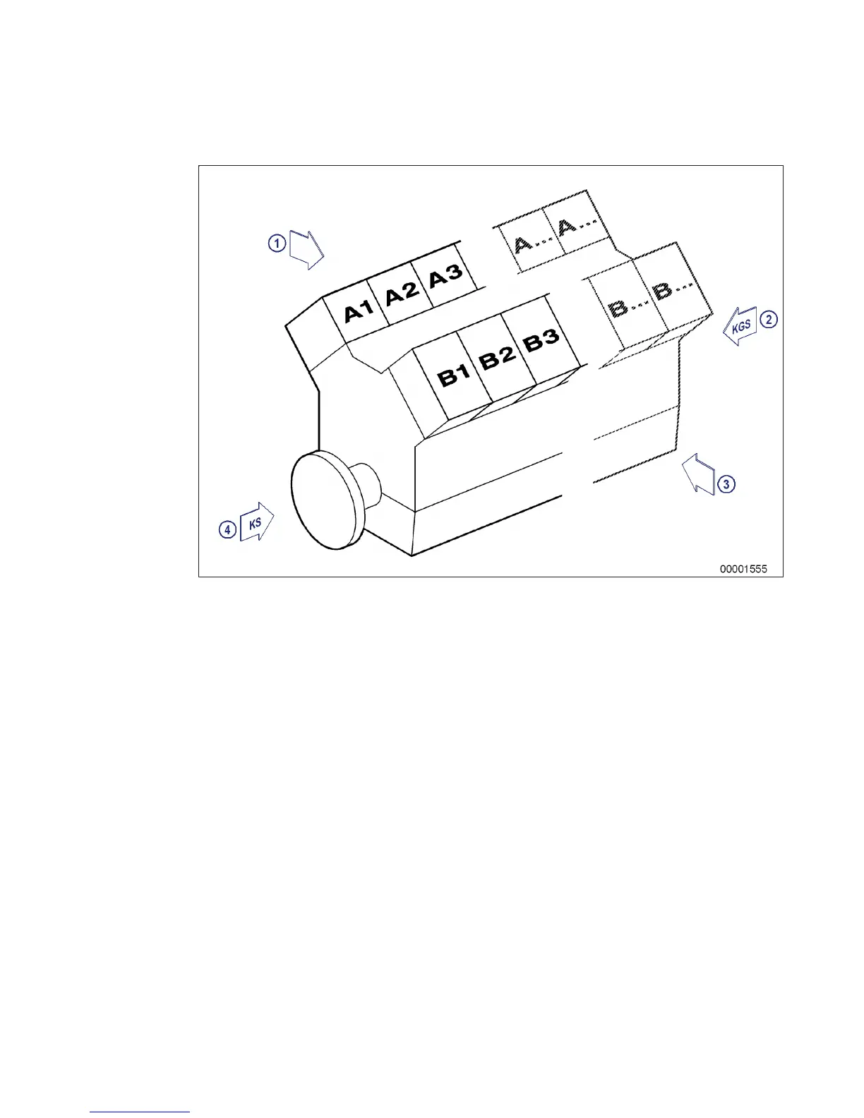 the left-hand side of the engine (1) and letter "Bx" refers to the cylinders on the right-hand side (3). The