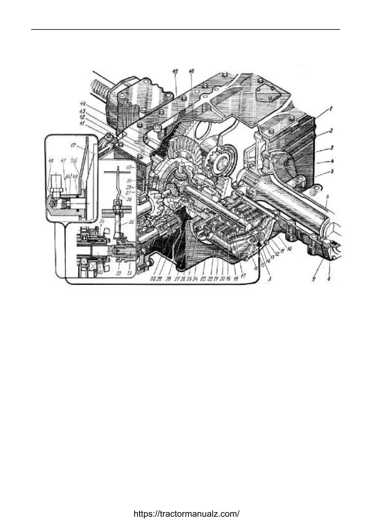 of differential casing; 47 — bush; 48 — spring; 49 —