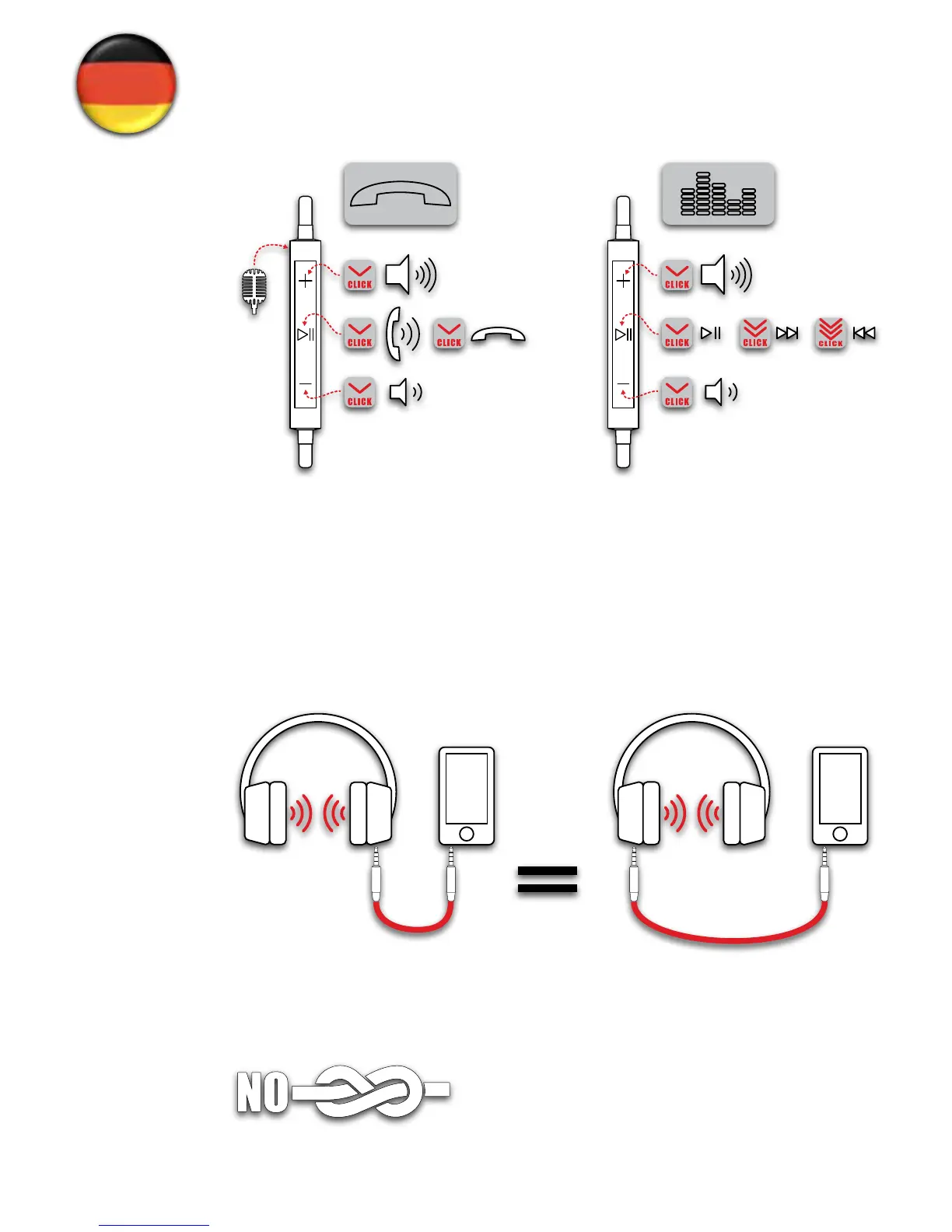 Das iX1 Audiokabel ist verknotungsfrei. Sie können Ihren iX1 aus der Tasche nehmen und müssen sich keine Sorgen um ein