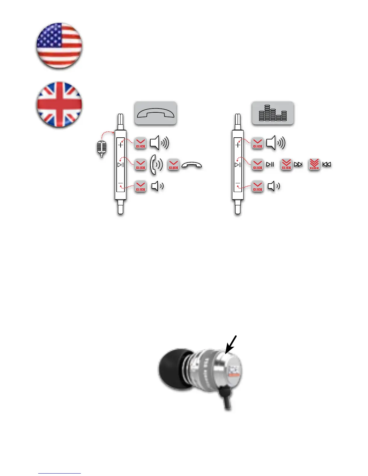 ume level, click (>ıı) once for play/pause, click twice to skip forward, click (>ıı)